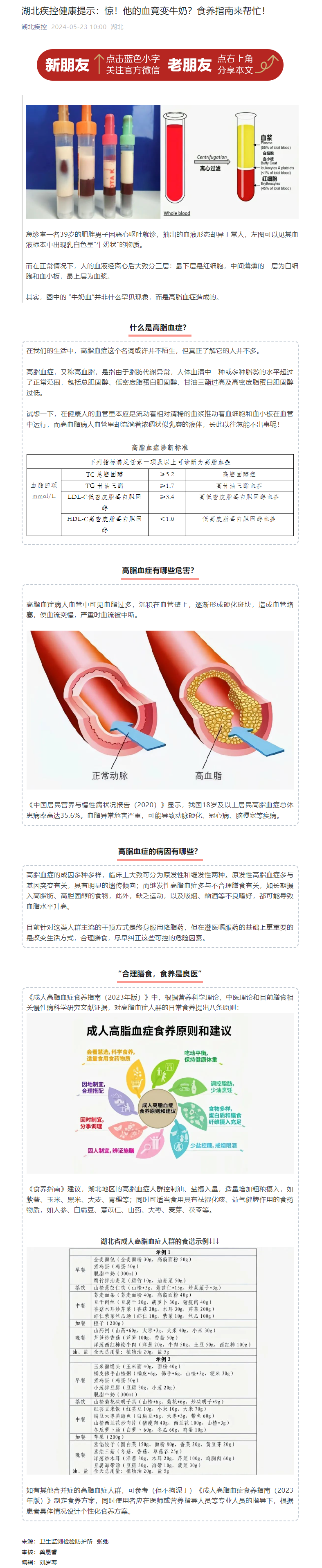 湖北疾控健康提示:驚!他的血竟變牛奶?食養指南來幫忙!