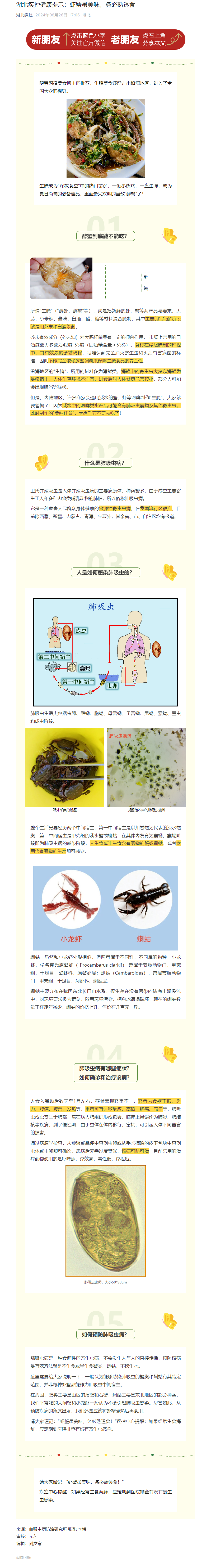 湖北疾控健康提示:蝦蟹雖美味,務必熟透食