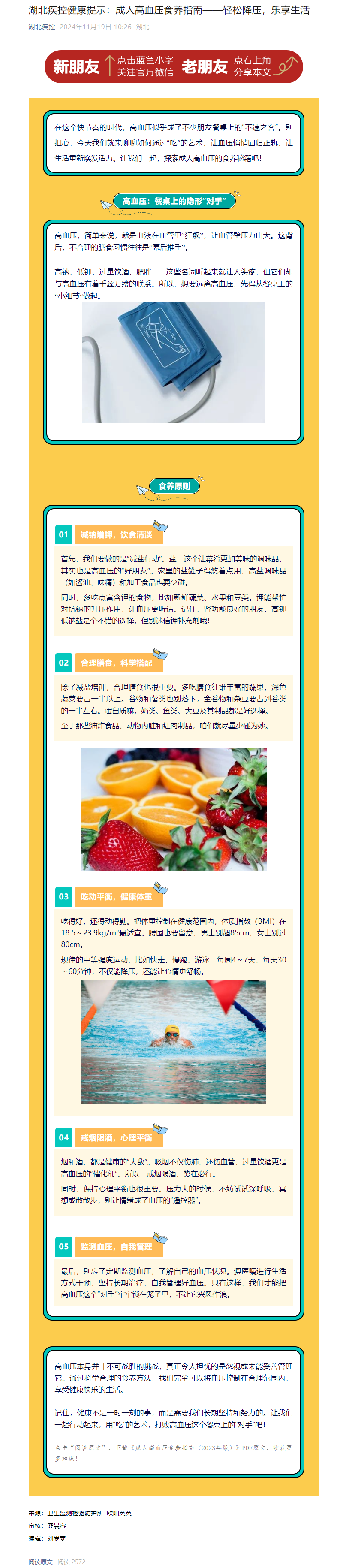 湖北疾控健康提示:成人高血壓食養(yǎng)指南——輕松降壓,樂享生活