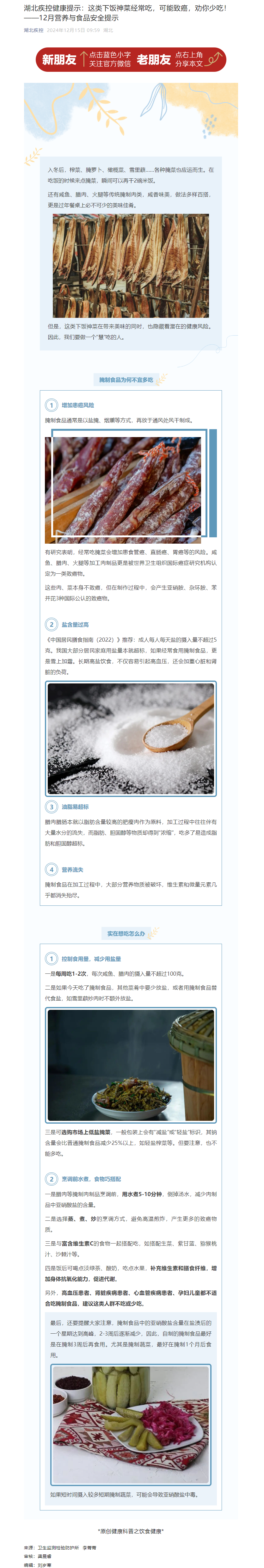 湖北疾控健康提示:這類下飯神菜經(jīng)常吃,可能致癌,勸你少吃!——12月營養(yǎng)與食品安全提示