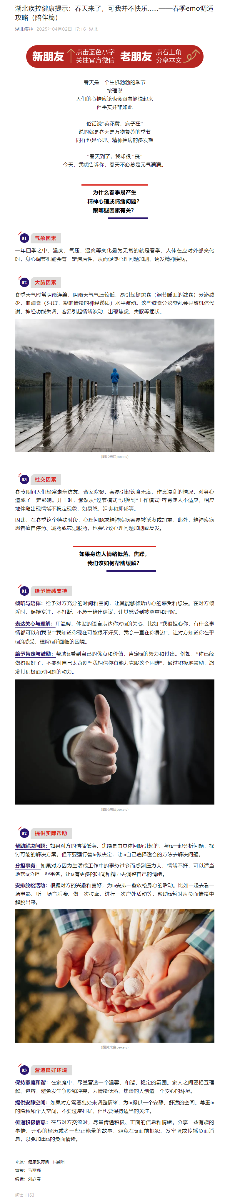 湖北疾控健康提示:春天來了,可我并不快樂……——春季emo調適攻略(陪伴篇)