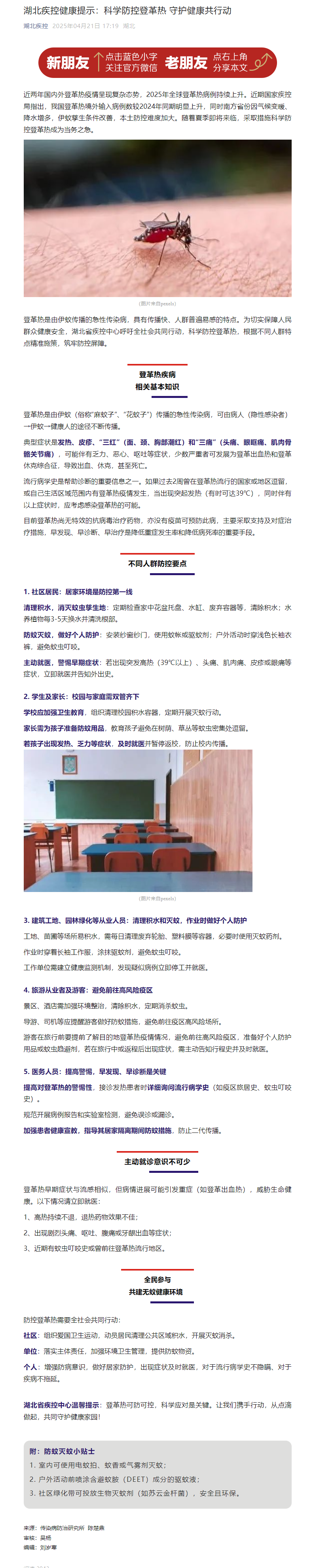 時間:2025-04-22 16:16:12來源:湖北省疾病預防控制中心 點擊量: