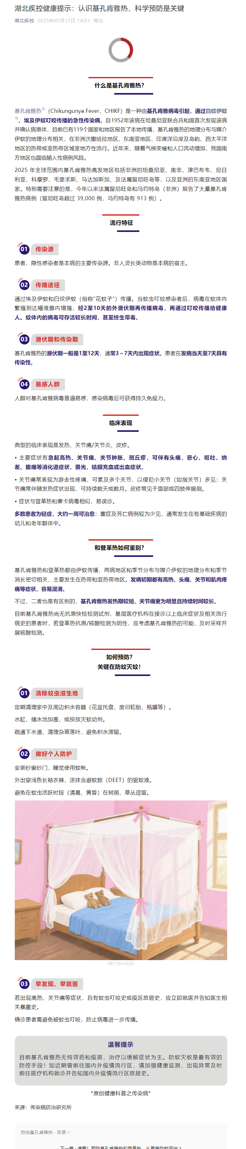 湖北疾控健康提示:認識基孔肯雅熱,科學預防是關鍵