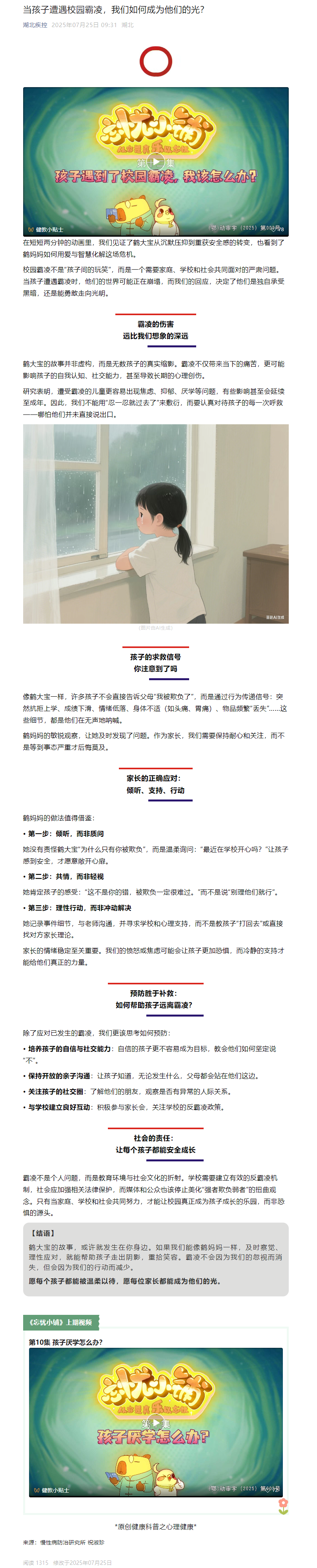 當(dāng)孩子遭遇校園霸凌,我們?nèi)绾纬蔀樗麄兊墓猓?/h2>