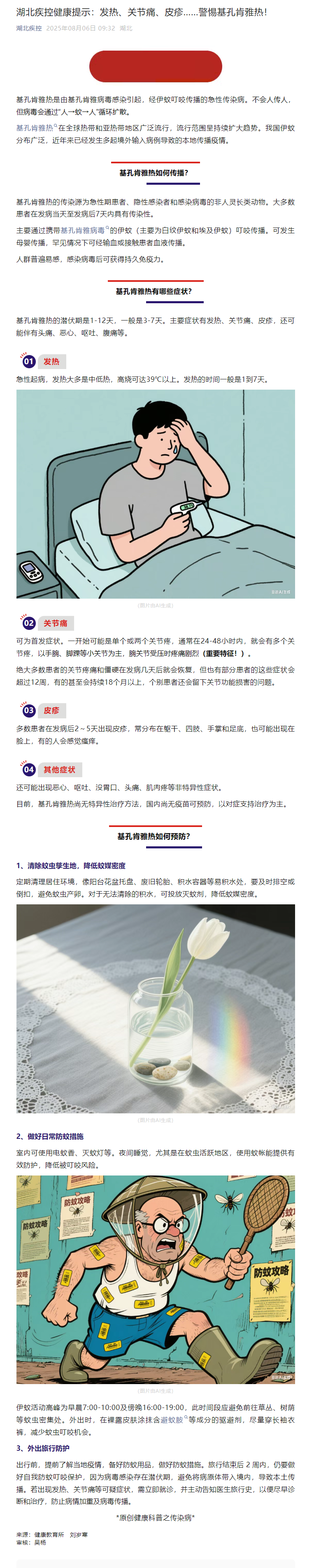 湖北疾控健康提示:發熱、關節痛、皮疹……警惕基孔肯雅熱!