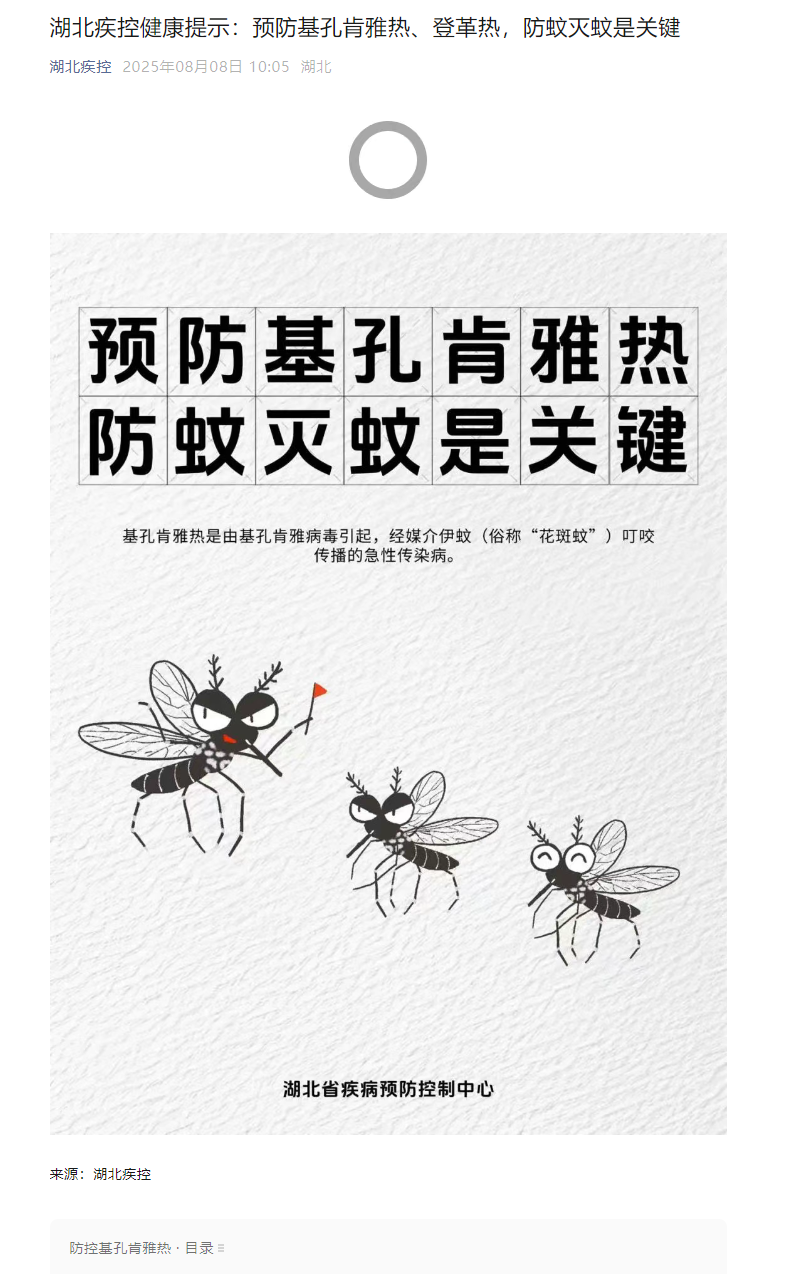 湖北疾控健康提示:預防基孔肯雅熱、登革熱,防蚊滅蚊是關鍵
