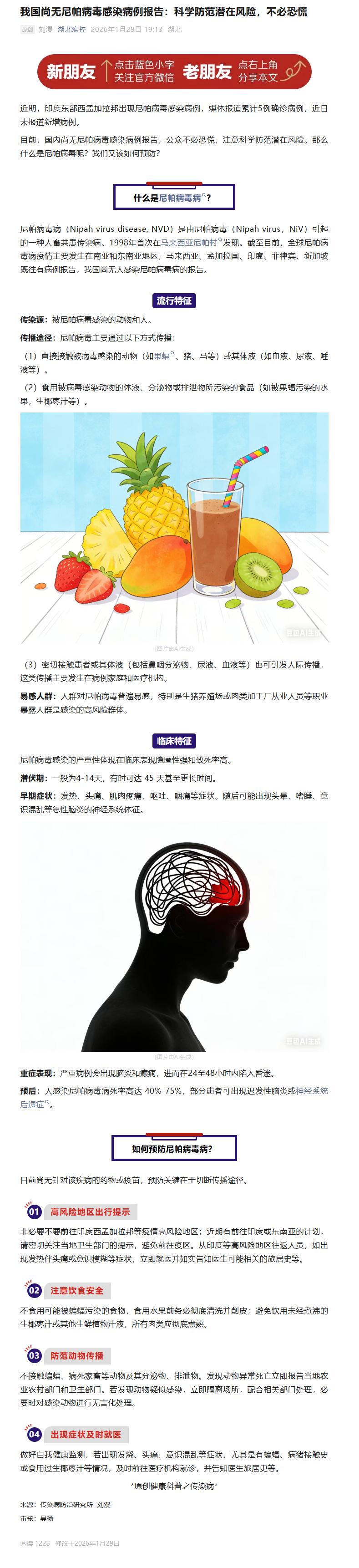 我國尚無尼帕病毒感染病例報告:科學防范潛在風險,不必恐慌