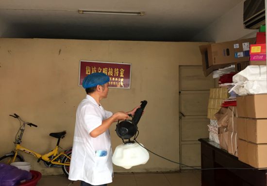 12時,應急消殺隊伍來到江漢區婦聯,采用超低容量噴霧器對區婦聯庫房進行室內環境消毒,同時對外環境地面進行了集中式噴灑消毒。