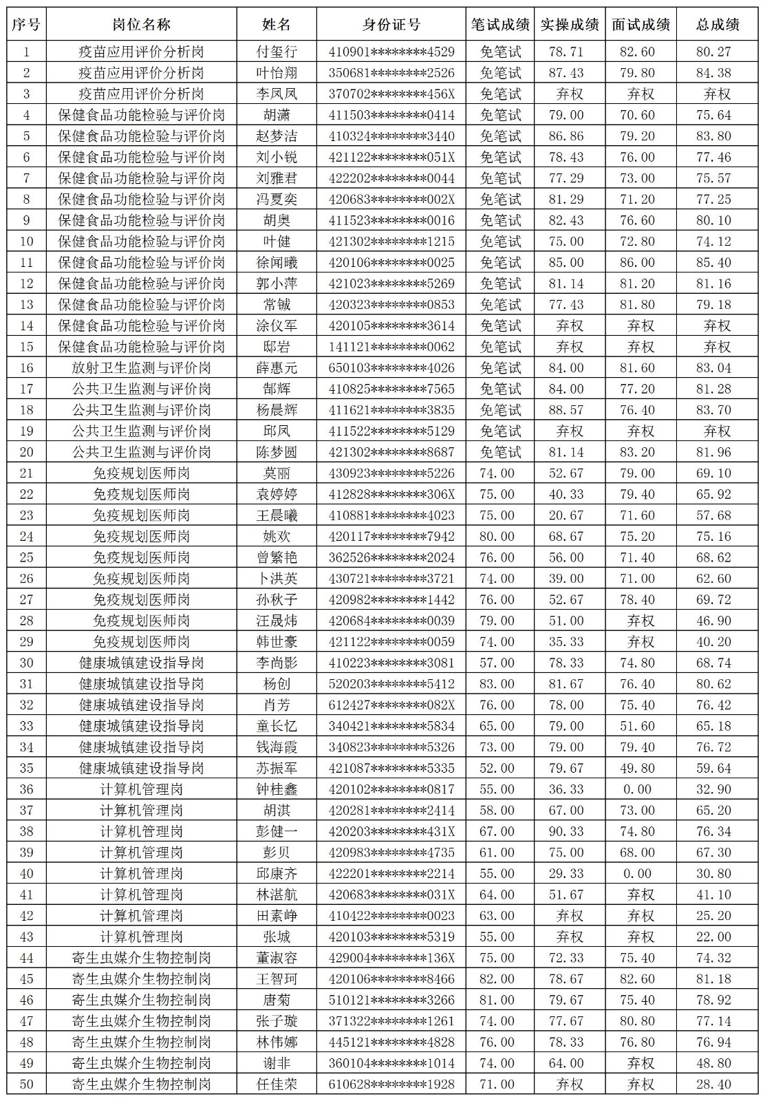 湖北省疾病預(yù)防控制中心2025年面向社會專項公開招聘總成績公告