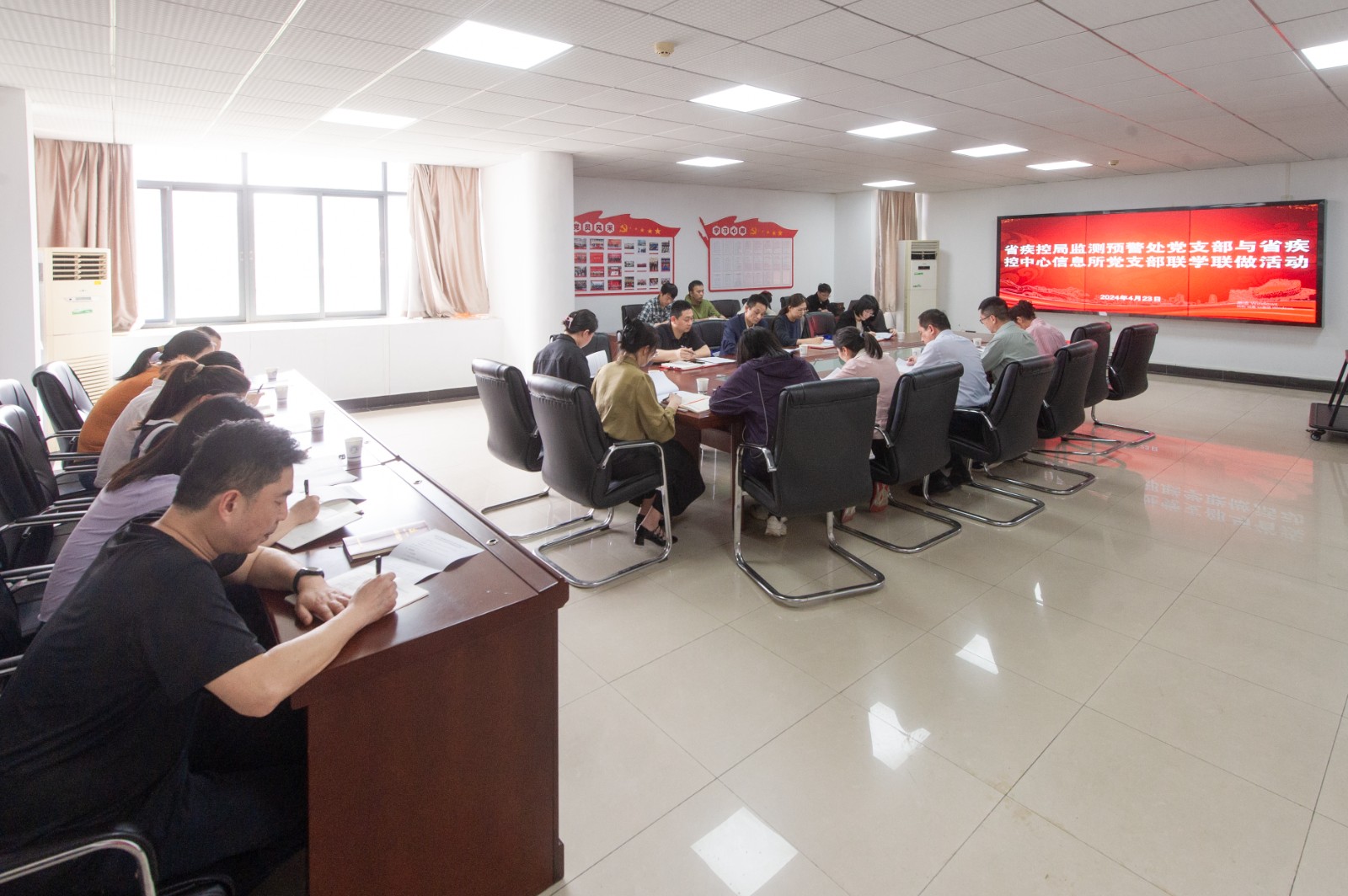 4月23日,省疾控局監測預警處黨支部與省疾控中心信息所黨支部開展了主題為“堅持總體國家安全觀 筑牢國家安全屏障”聯學聯做活動。活動由省疾控中心信息所黨支部書記李明炎主持,省疾控局監測預警處黨支部與省疾控中心信息所黨支部全體黨員參加了此次活動。