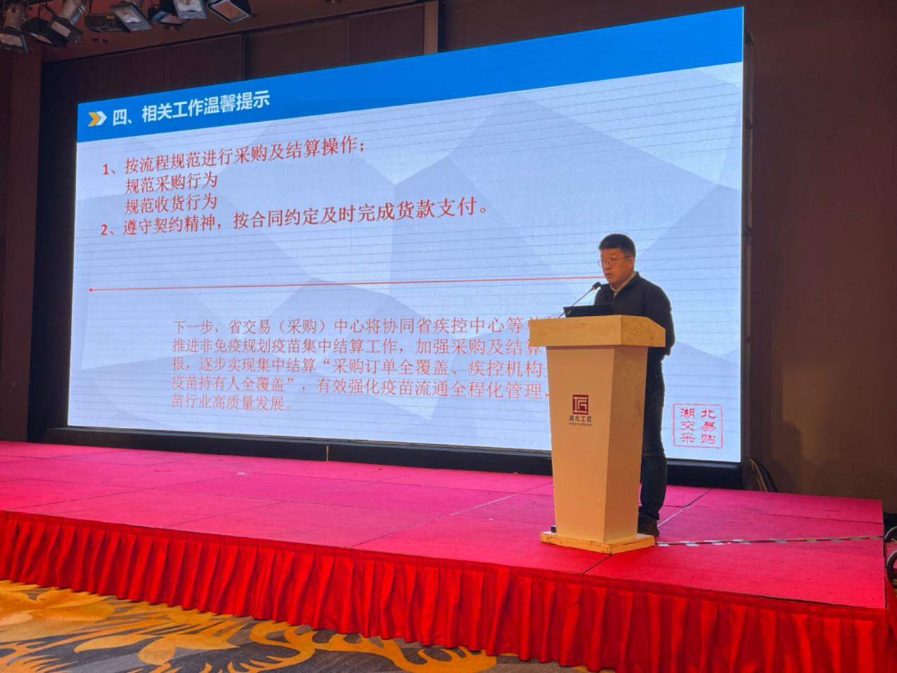 湖北省疾病預防控制中心黃希寶副主任和湖北省公共資源交易中心翁利勝處長在大會開幕式上致辭,充分肯定我省在2023年疫苗管理和非免疫規(guī)劃疫苗集中結算工作方面取得的成績,鼓勵大家繼續(xù)落實規(guī)范化、精細化、制度化的管理機制和措施,保障疫苗安全,為公眾的健康保駕護航。