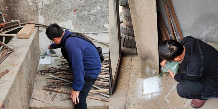 初冬寒意陣陣襲來(lái),11月20日,省疾控中心消媒部姚璇、譚梁飛、熊進(jìn)峰等一行抵達(dá)咸寧市后,立即帶領(lǐng)市區(qū)疾控專業(yè)人員赴多個(gè)點(diǎn)位勘察,尋找鼠患危害嚴(yán)重、適合開展殺鼠劑藥效現(xiàn)場(chǎng)試驗(yàn)的場(chǎng)所。通過(guò)現(xiàn)場(chǎng)查看鼠糞、鼠咬痕等方式,最終確定了一個(gè)老舊的食品加工廠和某單位食堂作為試驗(yàn)現(xiàn)場(chǎng)。