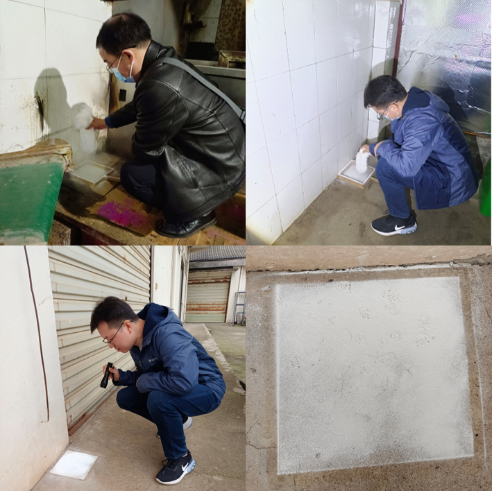 第二天清晨,專業(yè)人員再次趕往現(xiàn)場(chǎng)查看粉塊上是否有鼠爪印,統(tǒng)計(jì)結(jié)果后計(jì)算粉塊陽(yáng)性率,確定鼠密度符合現(xiàn)場(chǎng)試驗(yàn)要求后,當(dāng)天晚上投放硫酸鋇殺鼠劑,并連續(xù)幾日觀察,根據(jù)消耗量持續(xù)補(bǔ)投殺鼠劑。