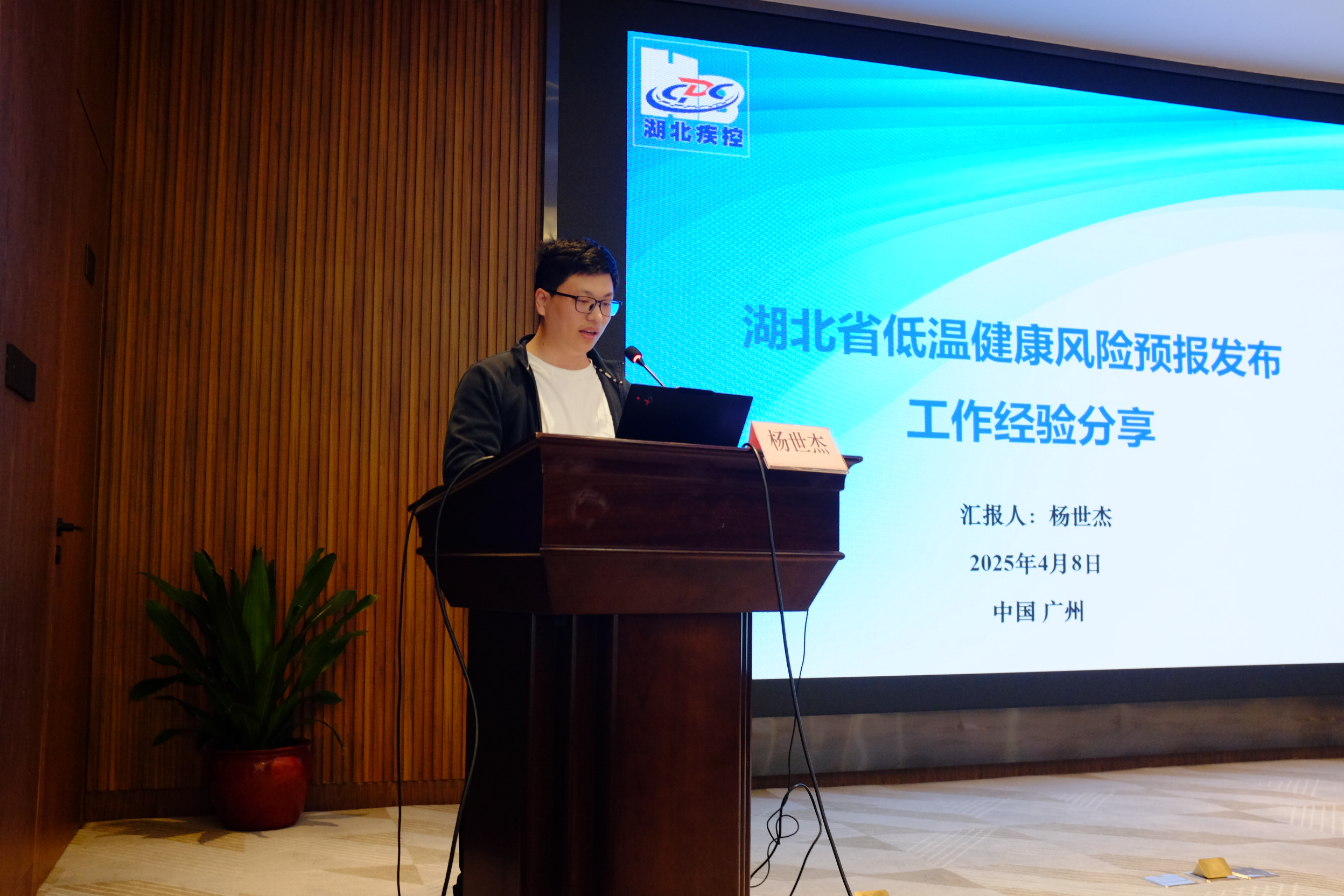 中心(院)衛監所環境衛生部楊世杰同志代表湖北省在會上做了湖北省低溫健康風險預報發布工作的經驗分享,介紹了我省在方案制定、平臺搭建、信息發布和健康宣傳等方面的經歷和體會,并對下一步平臺優化提出了建議。