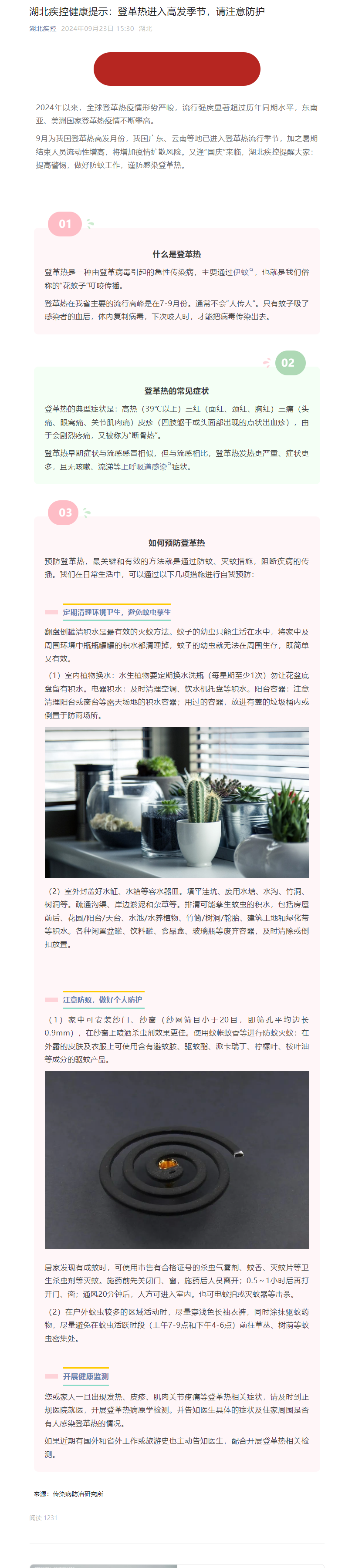 湖北疾控健康提示:登革熱進入高發季節,請注意防護